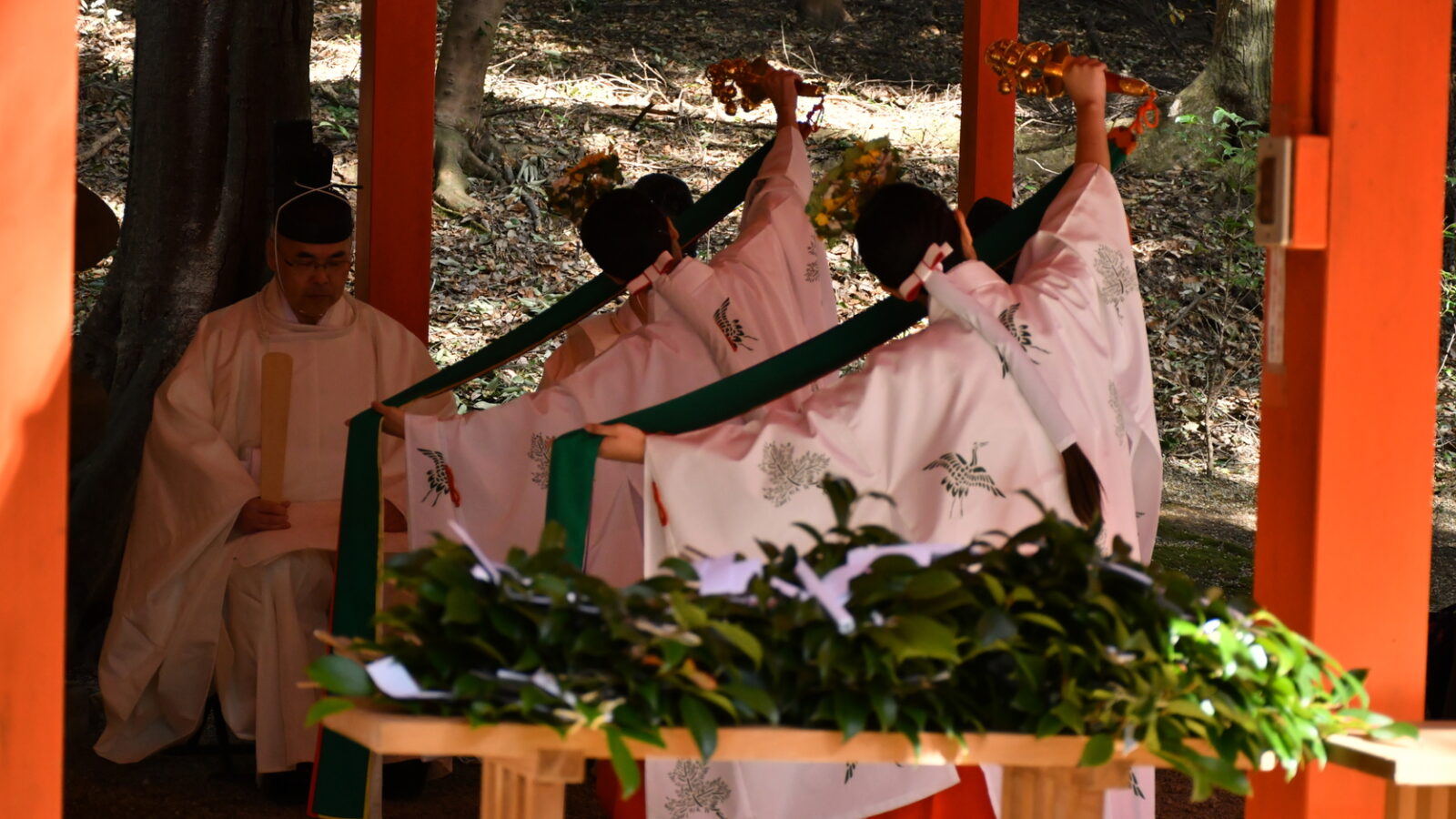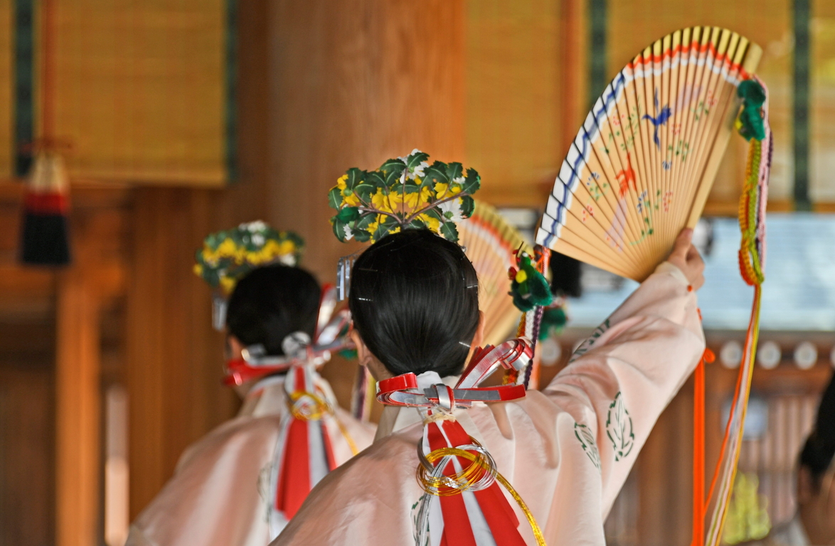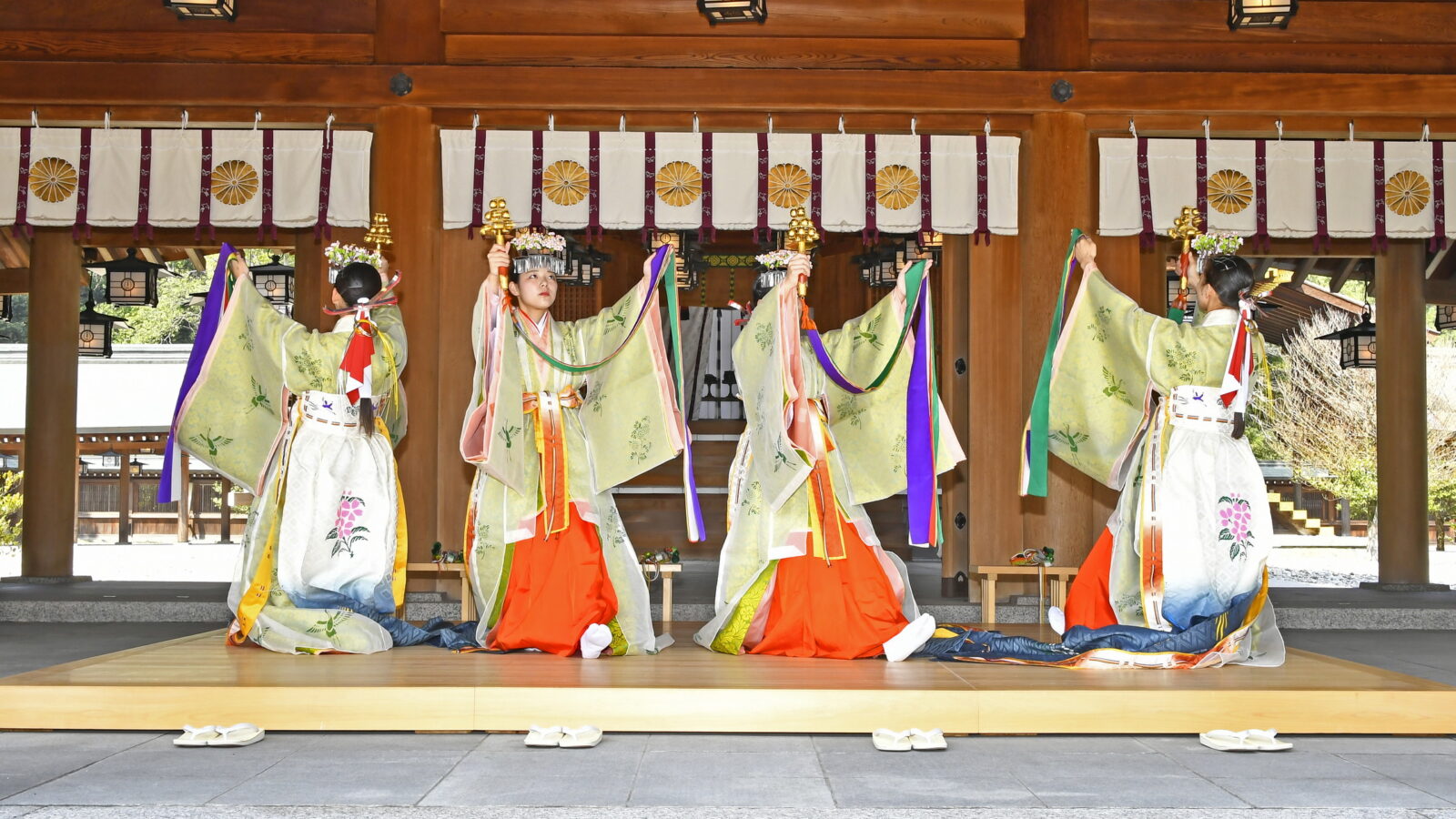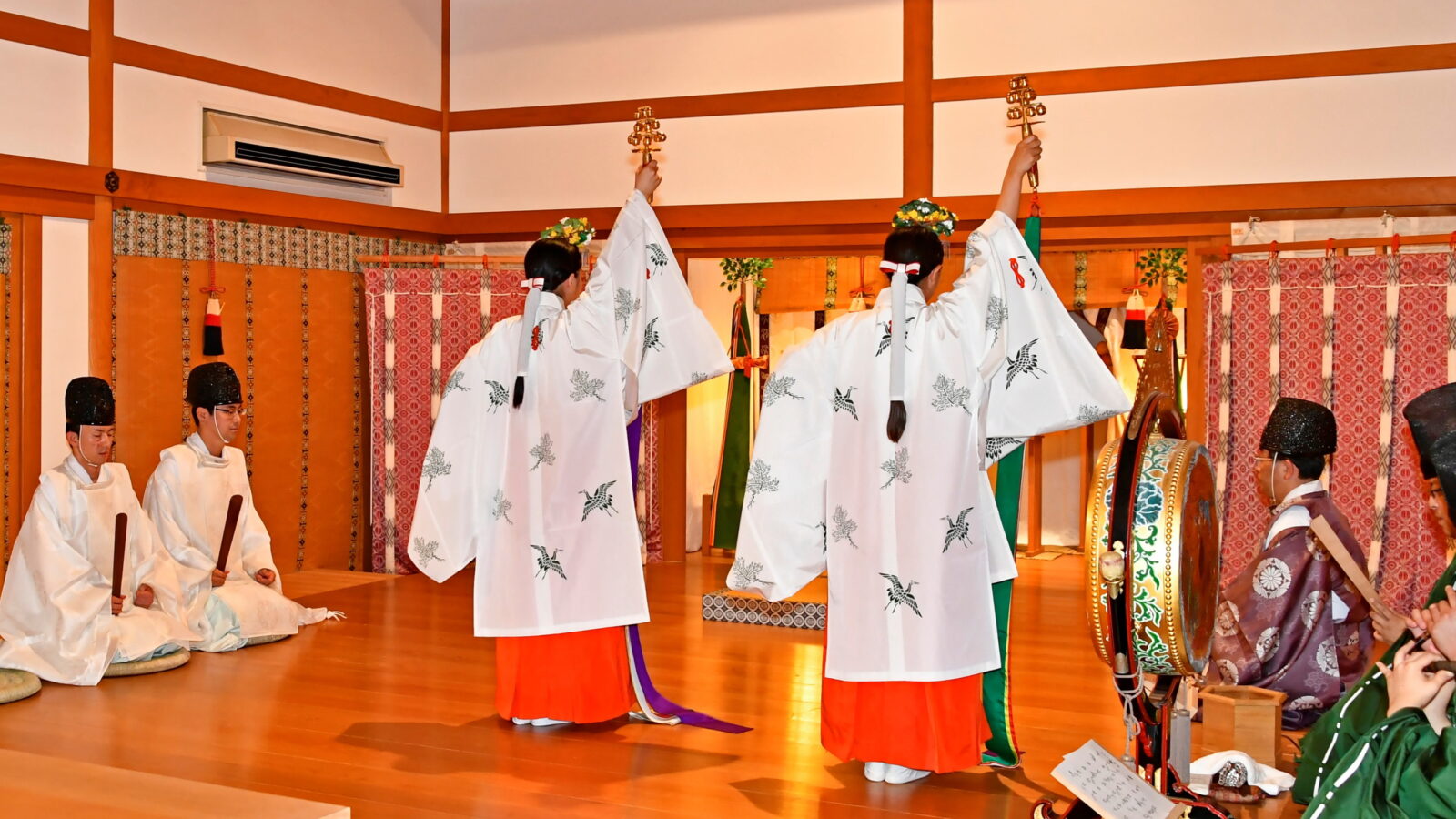 新年を迎えた元旦から7日まで行われます。旧年の御加護に感謝するとともに、新しい年の皇室の弥栄、国家の安泰、そして世界平和を祈願し、神楽舞を奉奏いたします。併せて、開運招福と健康延寿、家内安全、事業繁栄など、御崇敬の皆様の篤志を御祈願申し上げます。