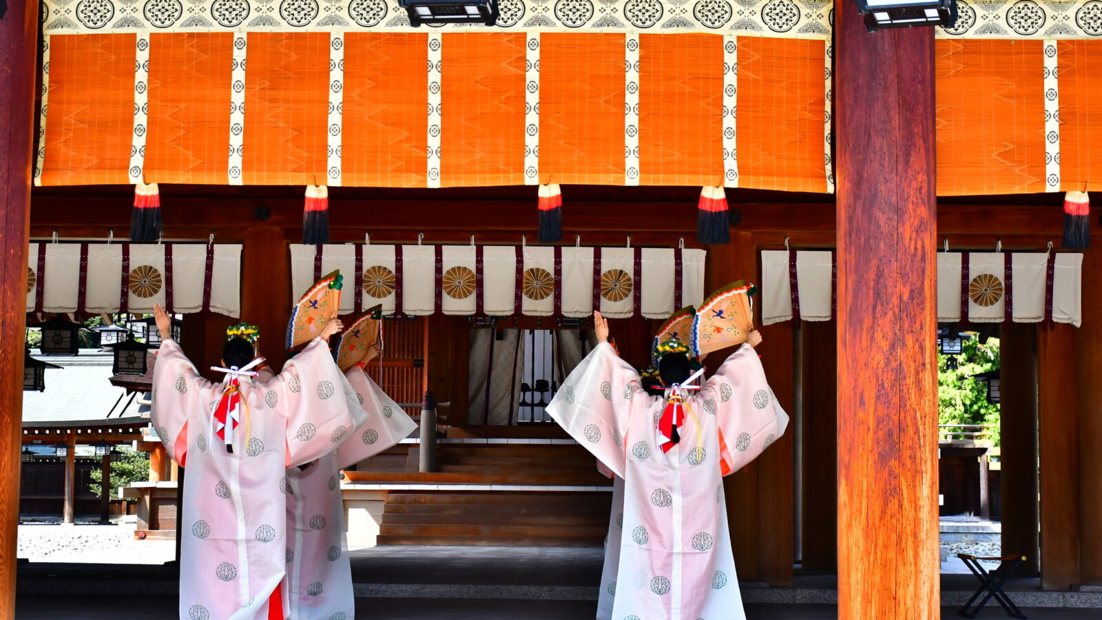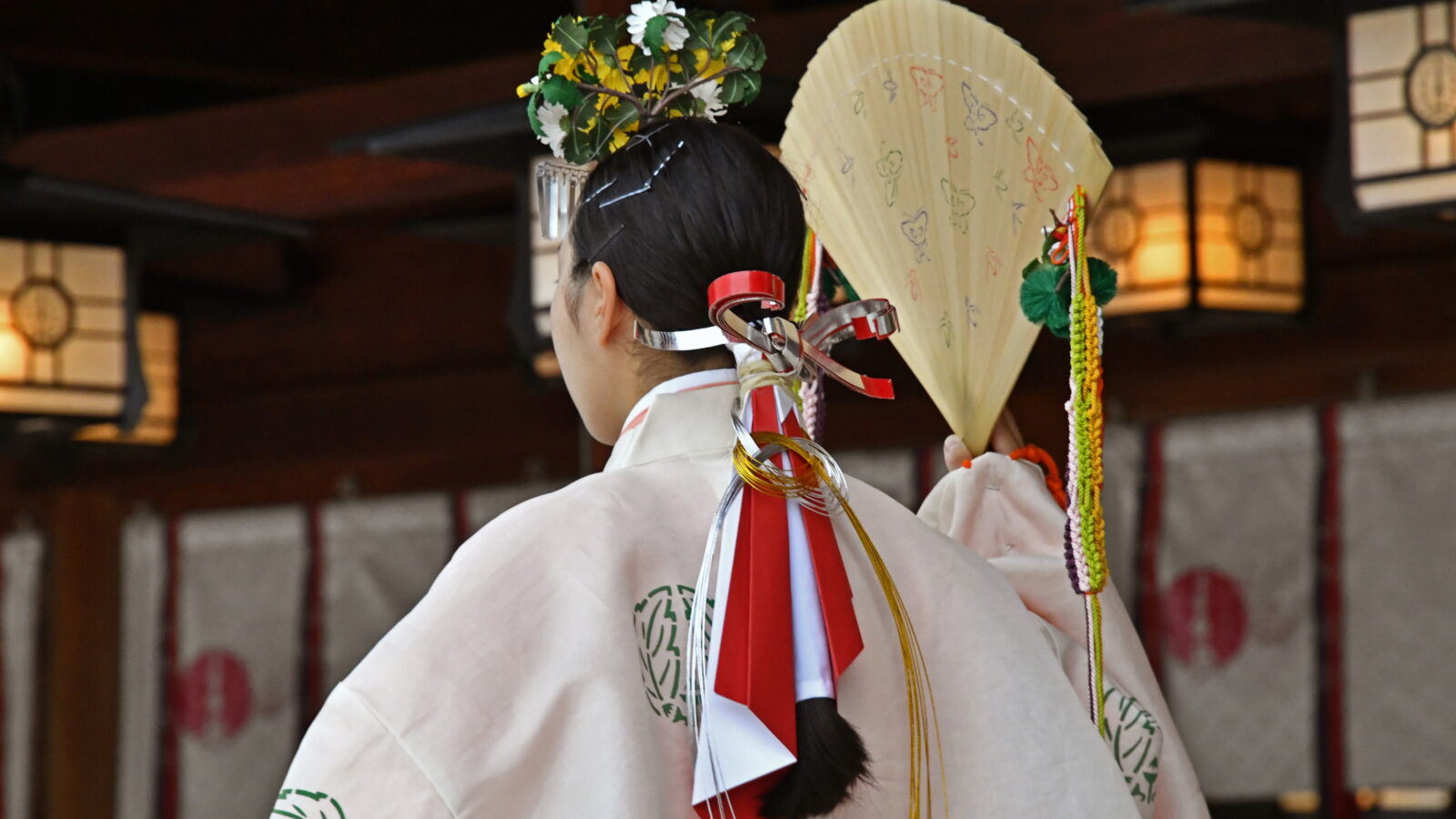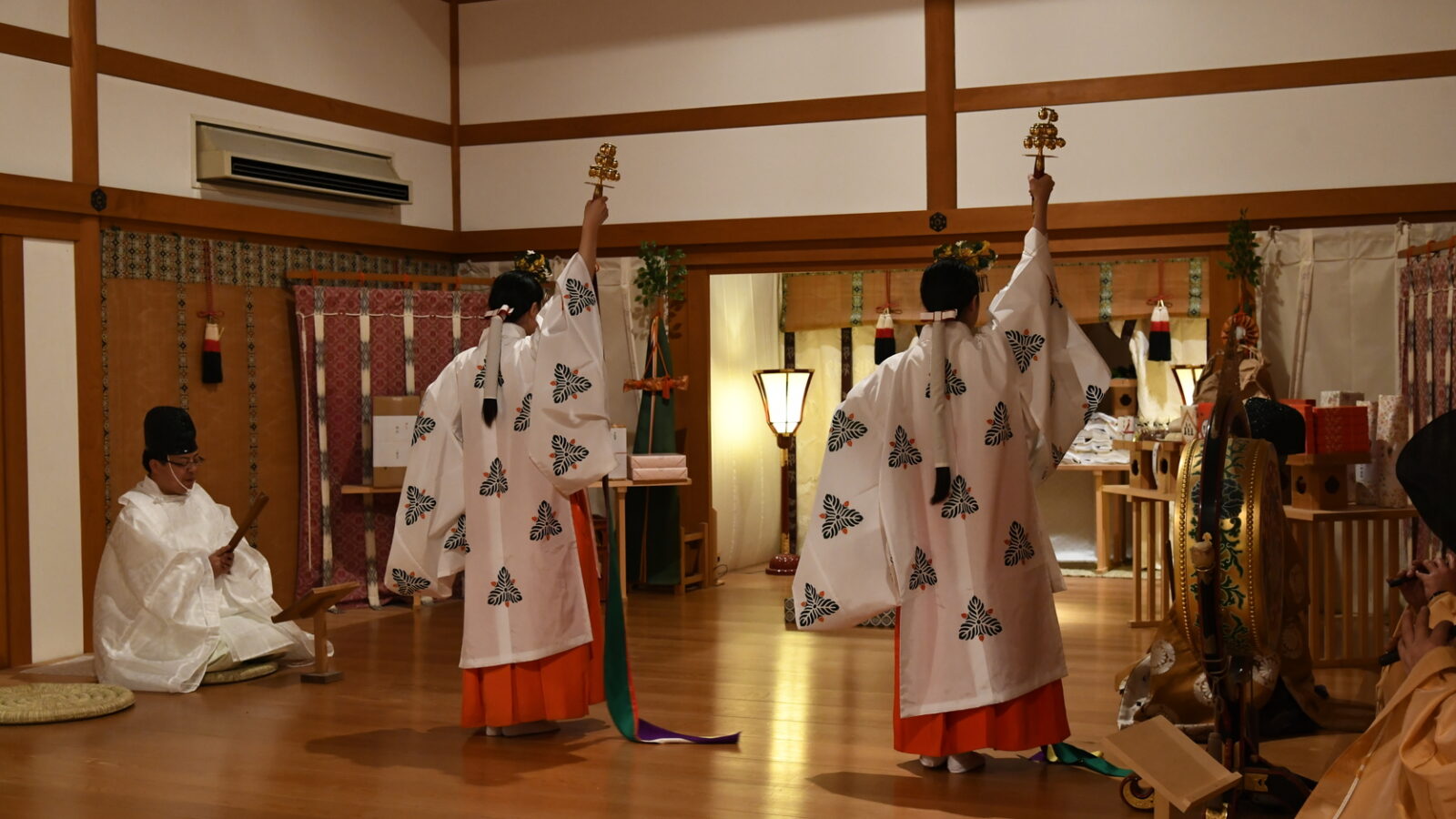新年を迎えた元旦から7日まで行われます。旧年の御加護に感謝するとともに、新しい年の皇室の弥栄、国家の安泰、そして世界平和を祈願し、神楽舞を奉奏いたします。併せて、開運招福と健康延寿、家内安全、事業繁栄など、御崇敬の皆様の篤志を御祈願申し上げます。