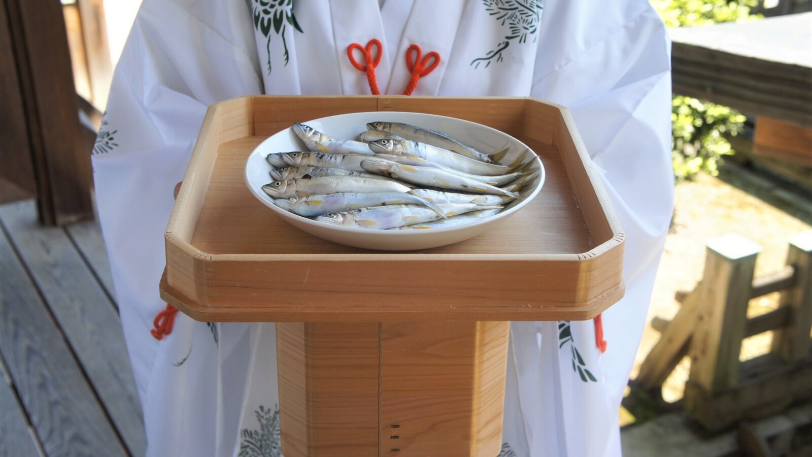 岐阜県・長良川の鵜飼開き(例年5月11日)で捕らえられた鮎が奉献される神事です。