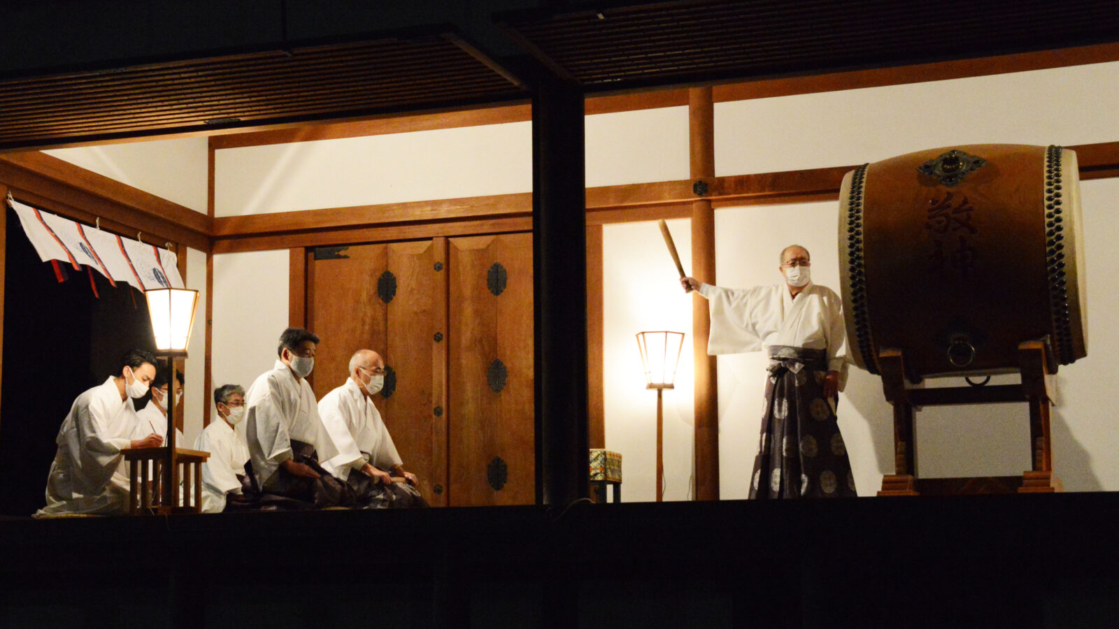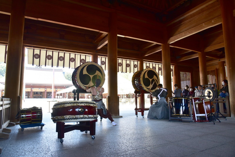 午前0時とともに、宮司以下神職等が打ち鳴らす初太鼓の響きが、新年の訪れを告げます。初太鼓では、神武天皇が即位された年を元年とする「紀元」に因んだ数、太鼓を打ち鳴らします。例年、正月三ヶ日の参拝者数が100万人を越える初詣が、この太鼓の音を機に始まります。