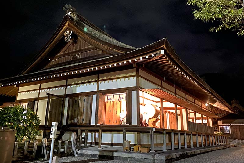 夕刻、約1,000基を越える燈篭が、幽玄的で荘厳に、社殿や参道を照らします。 |