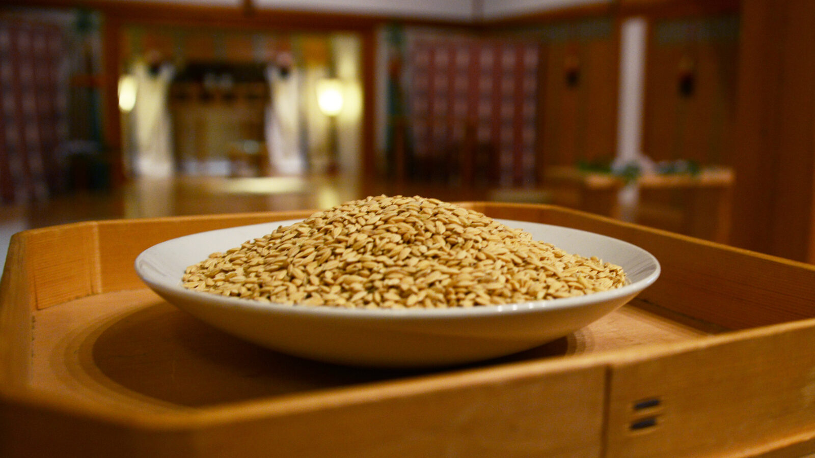 御神前に罪穢れのない清浄な種という意の「忌種(いみだね)」をお供えし、苗が無事に育ち、立派な稲穂が実るように祈念いたします。