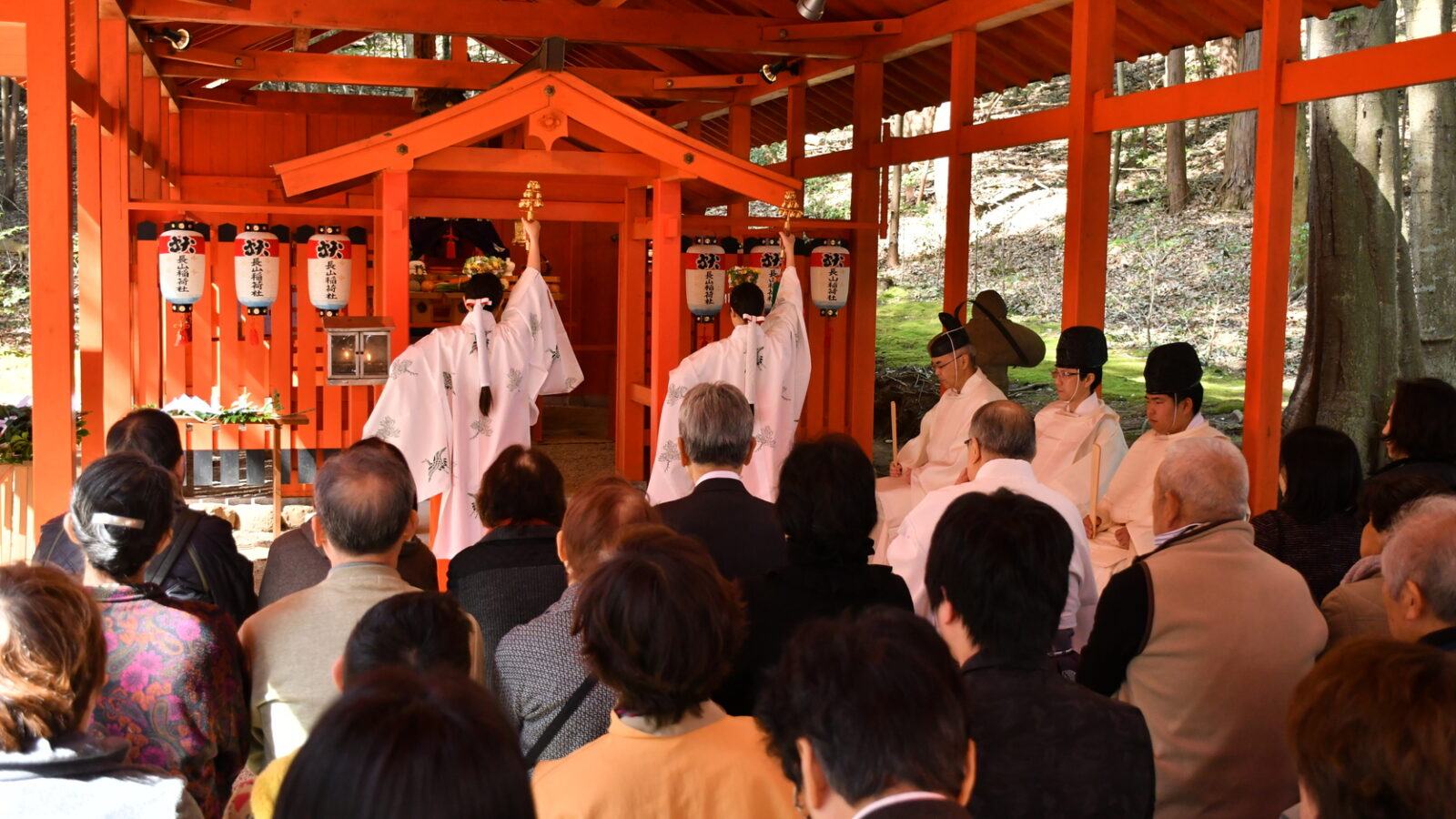 和歌の上句と下句を交互に読み続ける詩歌の一種である「連歌」を、桜の咲く時期に詠み、神仏に奉納するものです。