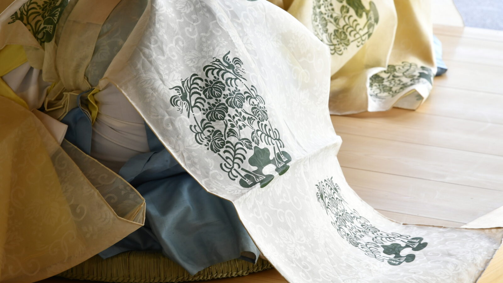 「神御衣」は神様の衣をあらわし、「赤引糸」は清浄な絹糸を意味します。神宮神衣御料所は「お糸神社」とも言われており、糸姫と呼ばれる女性が足踏み式の繰り糸機を使い、繭から生糸を紡ぐ神事が行われています。 |