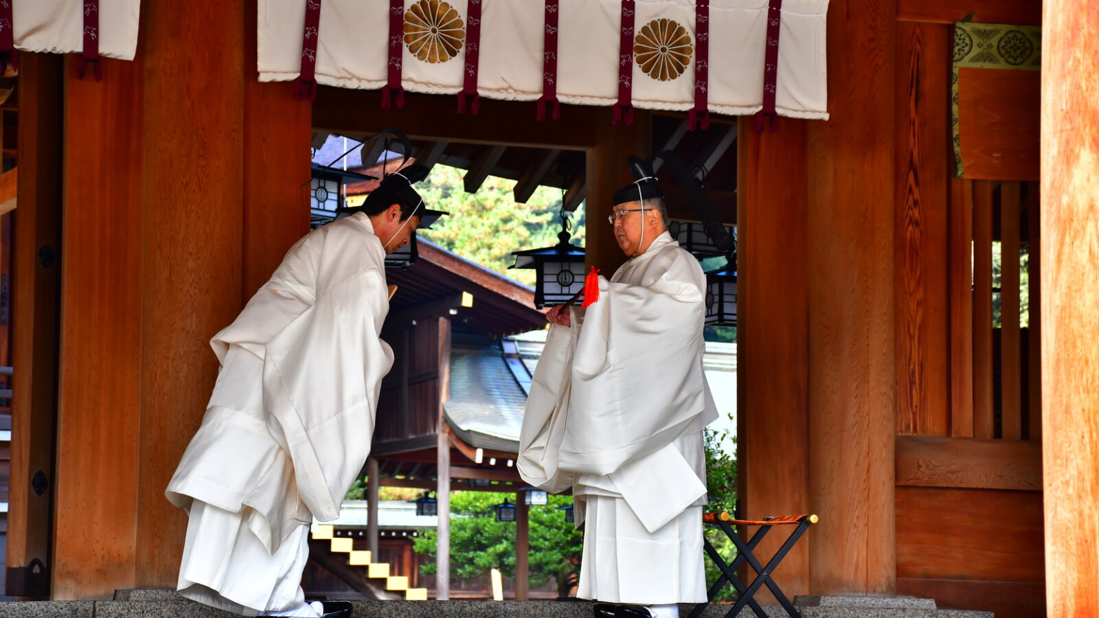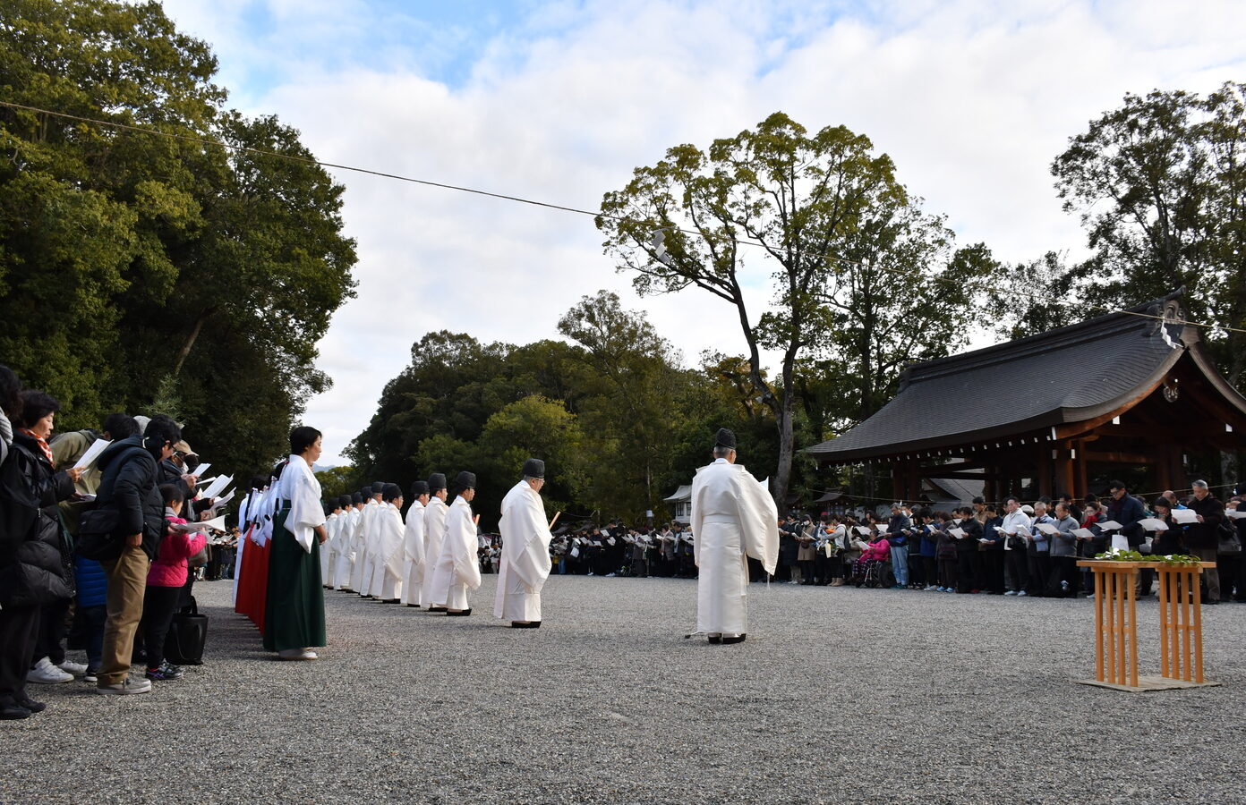 「神嘗奉祝祭」は、天照大神に新穀を奉る伊勢の神宮の「神嘗祭(かんなめさい)」に対し、奉祝の意を表す祭典です。