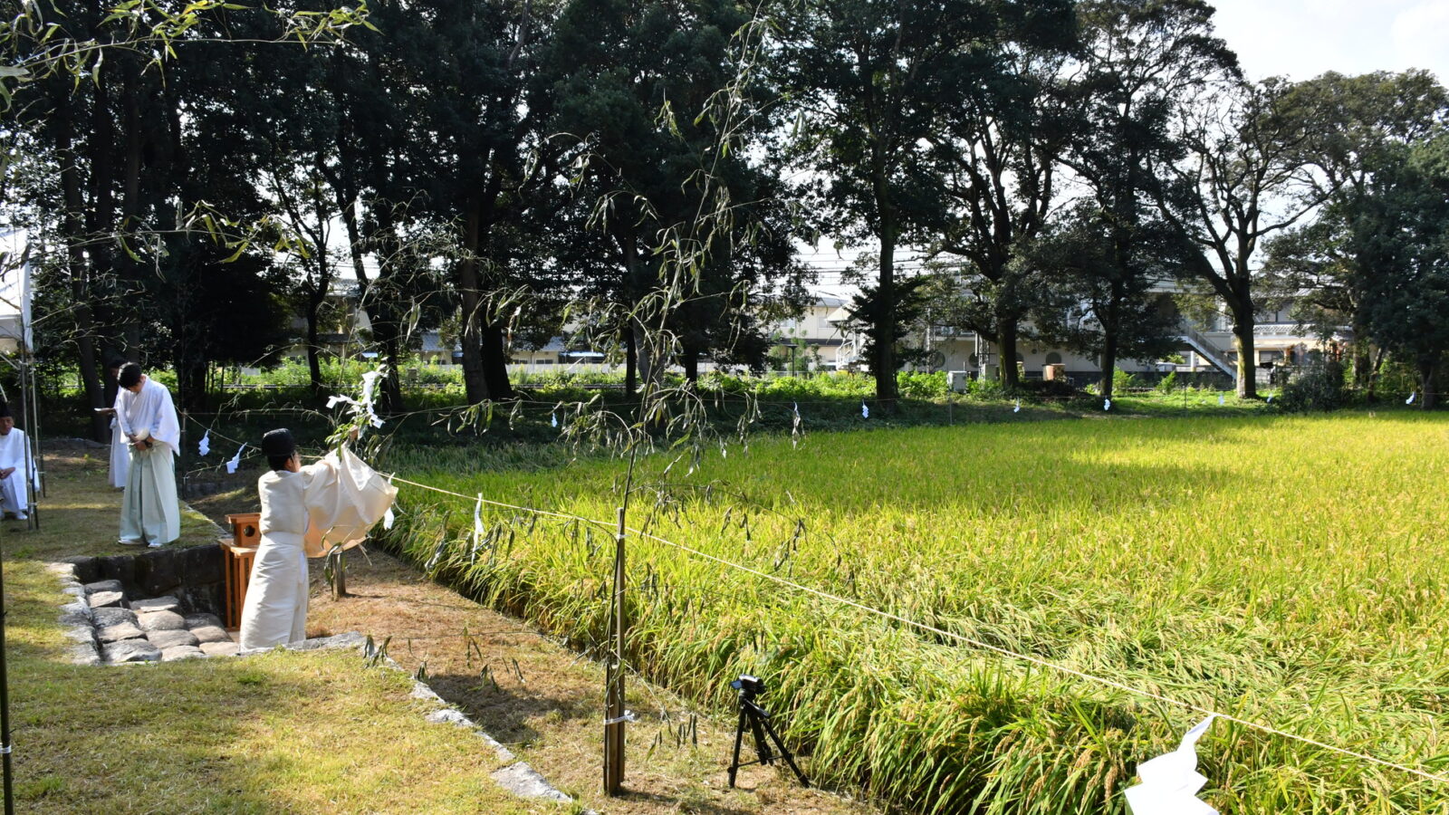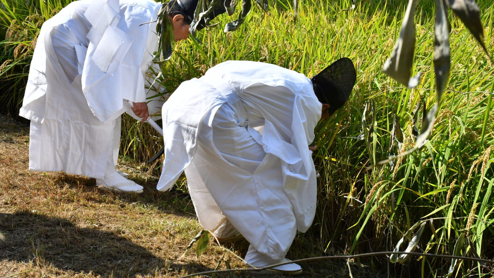 6月に斎行された「御田植祭」で植えられた苗が、実りを迎えた時期に執り行われます。