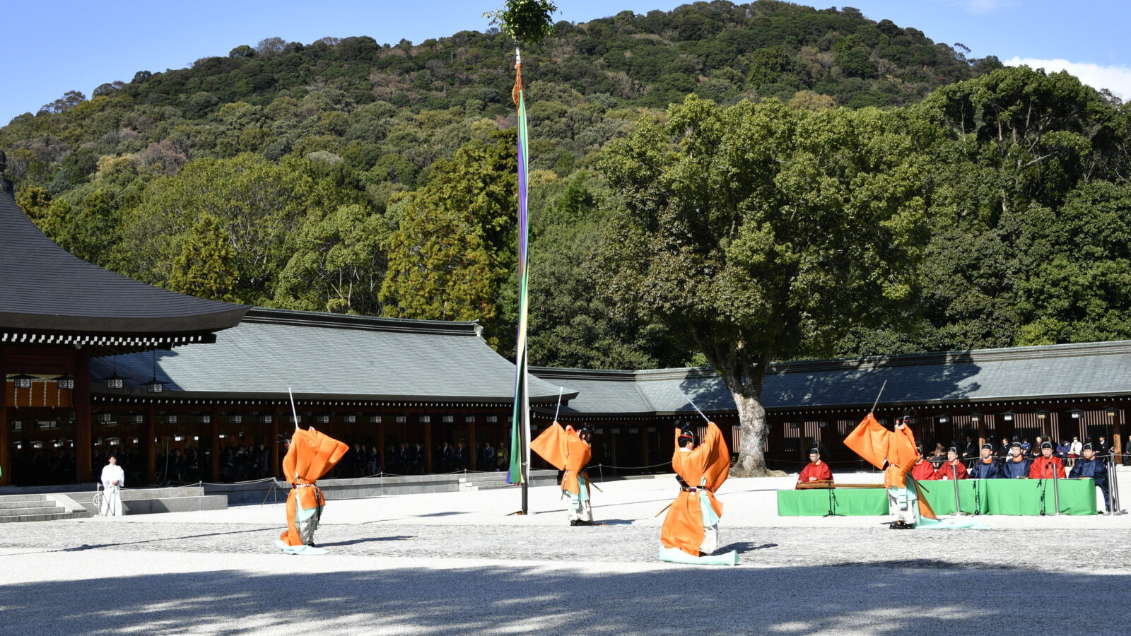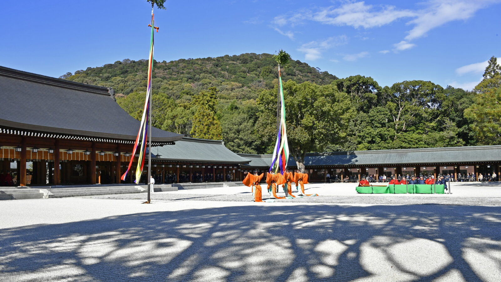 宮中三殿で天皇陛下自ら皇位の元始を祝い、国家国民の繁栄を祈る祭典。「日本のはじまりの地」橿原神宮においても祭典が執り行われます。