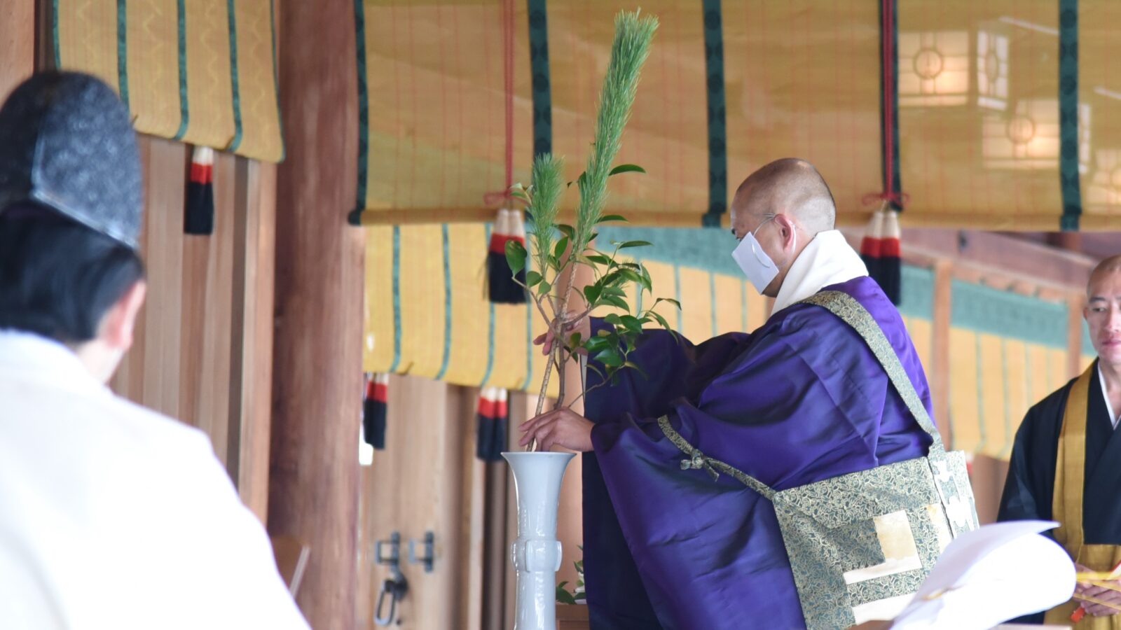 華道嵯峨御流 境希龍氏による奉仕による秋季献華祭が執り行われます。祭典では、境氏並びに社中の方々による献華が、それぞれ御神前に供えられます。