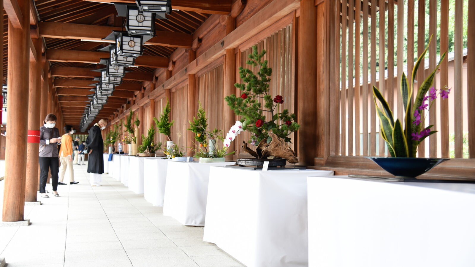 ◎献華作品は、祭典後外拝殿にて御覧いただけます。 【同時開催:華教室蓮林 献華展】 また、外拝殿 北側廻廊にて、御祭神への献華として「いけばな嵯峨御流 境將甫社中 献華展」が開催されます。 |