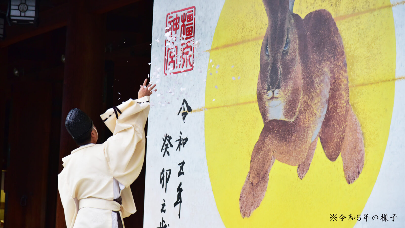 外拝殿の大絵馬が、新たな干支へと替わるに伴い、清祓いを執り行います。